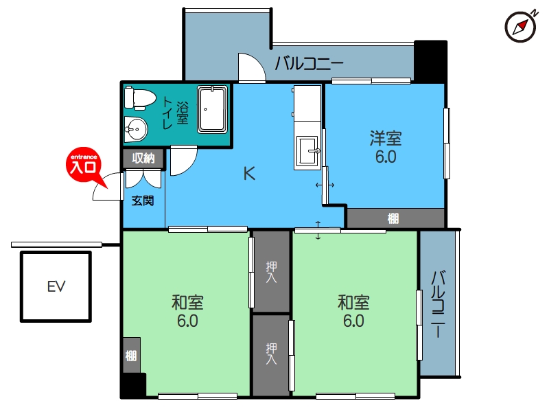 | 面積 | 49.6㎡(15坪) | 築年数 | 築58年 |